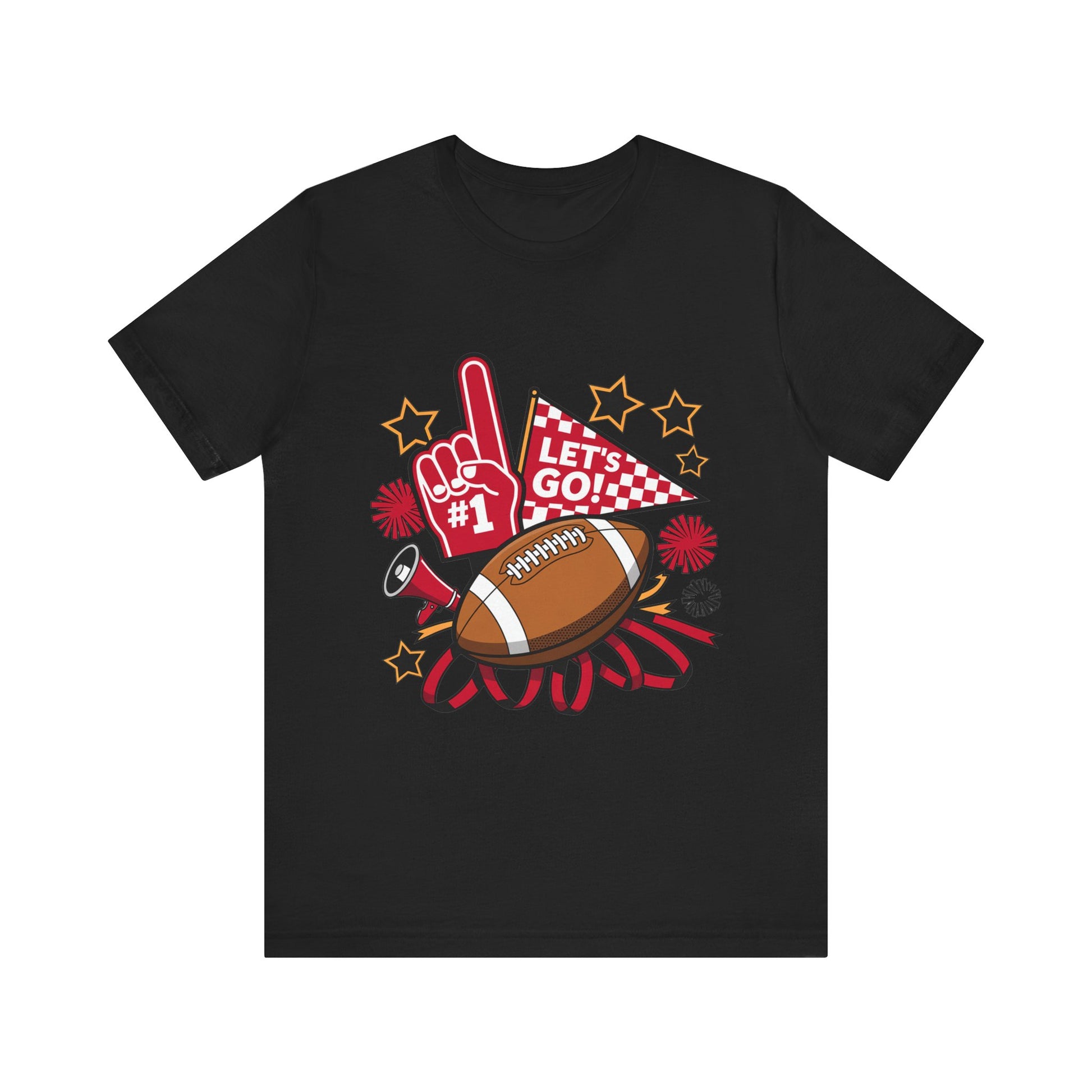 Game Day Football Shirt | Bella Canvas Black Tee | Cheer Spirit Shirt | Let’s Go Football Fan T-Shirt | Sports Mom Tee | Tailgate Outfit