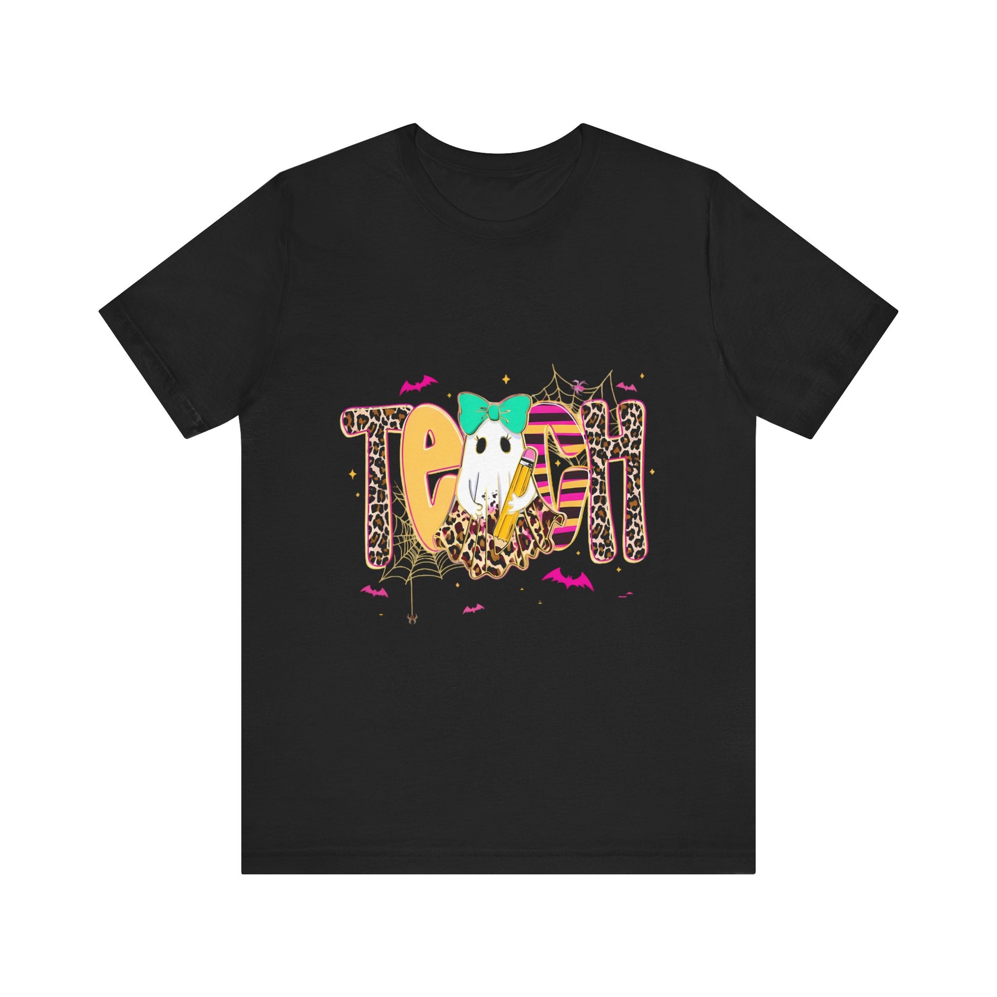Bring spooky-season vibes to the classroom with this fun Halloween teacher tee! This Bella + Canvas relaxed fit jersey t-shirt is soft, stylish, and perfect for layering. Featuring a cute ghost in a leopard skirt with colorful accents, it’s the ultimate mix of festive and comfy for fall. Great for teachers who want to celebrate Halloween in style!